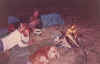 Genietend van de mooie avond sla ik aan het kokkerellen. Handig, dat tweepits gasstel. Ik zie mijn vader nog stoeien met een primus, een petroleumvergasser. Veel rook, veel stank, steekvlammen. En als het ding het eindelijk deed, hield het ermee op nog voor de piepers gaar waren. Toen was kamperen nog kreperen. Puree-uit-een-pakje, een blik boontjes, twee gebakken eieren. In een mum van tijd is het klaar. Het oog is groter dan de maag, Floppie eet met smaak de rest op.